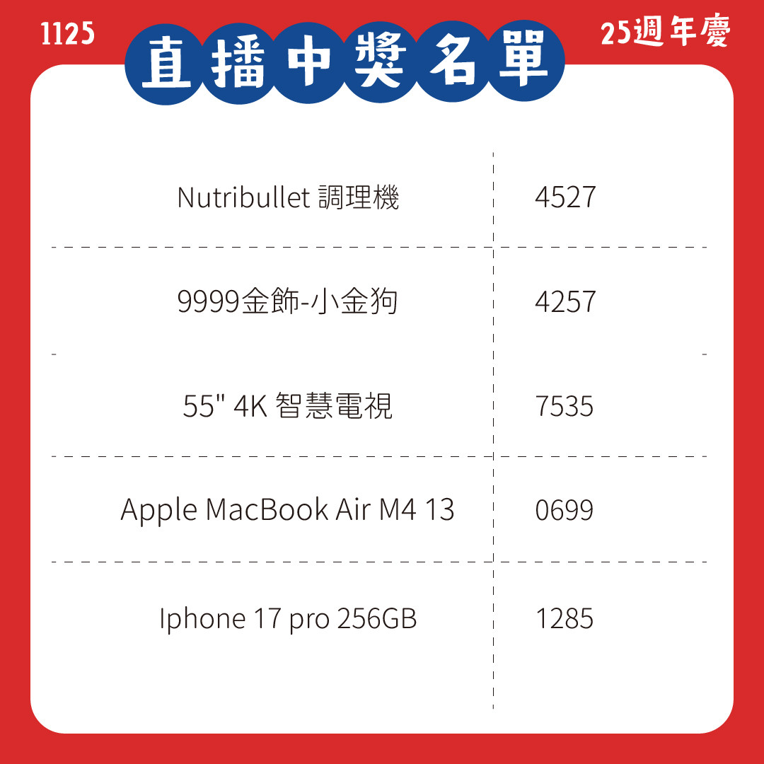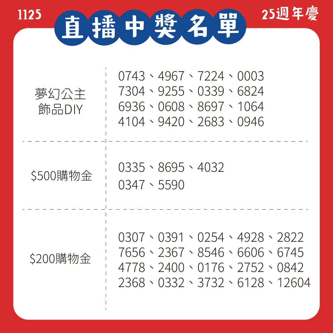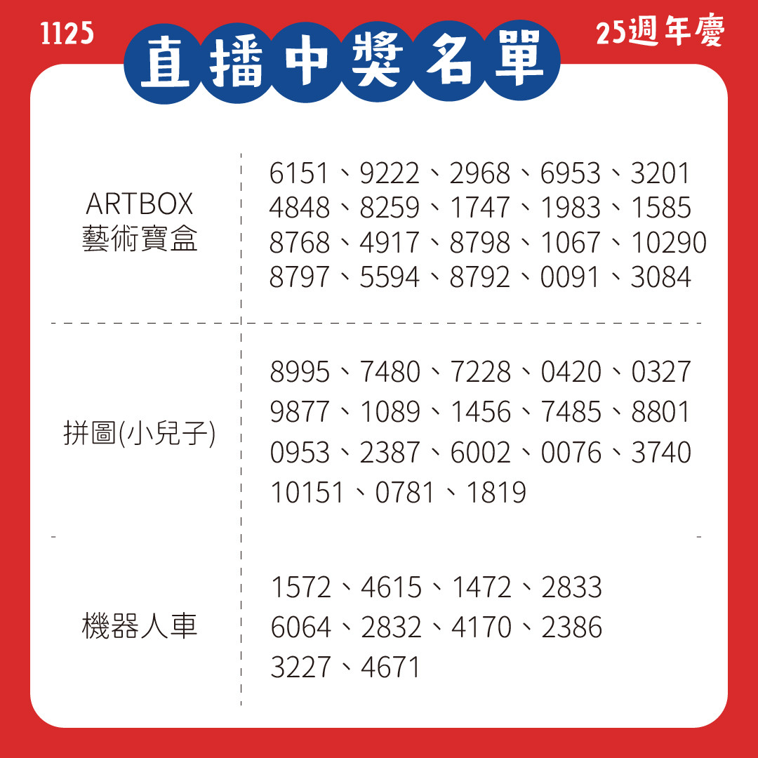 【藝起幸運抽】Otto2 25週年慶 月月直播抽好禮ღ _ 中獎公告