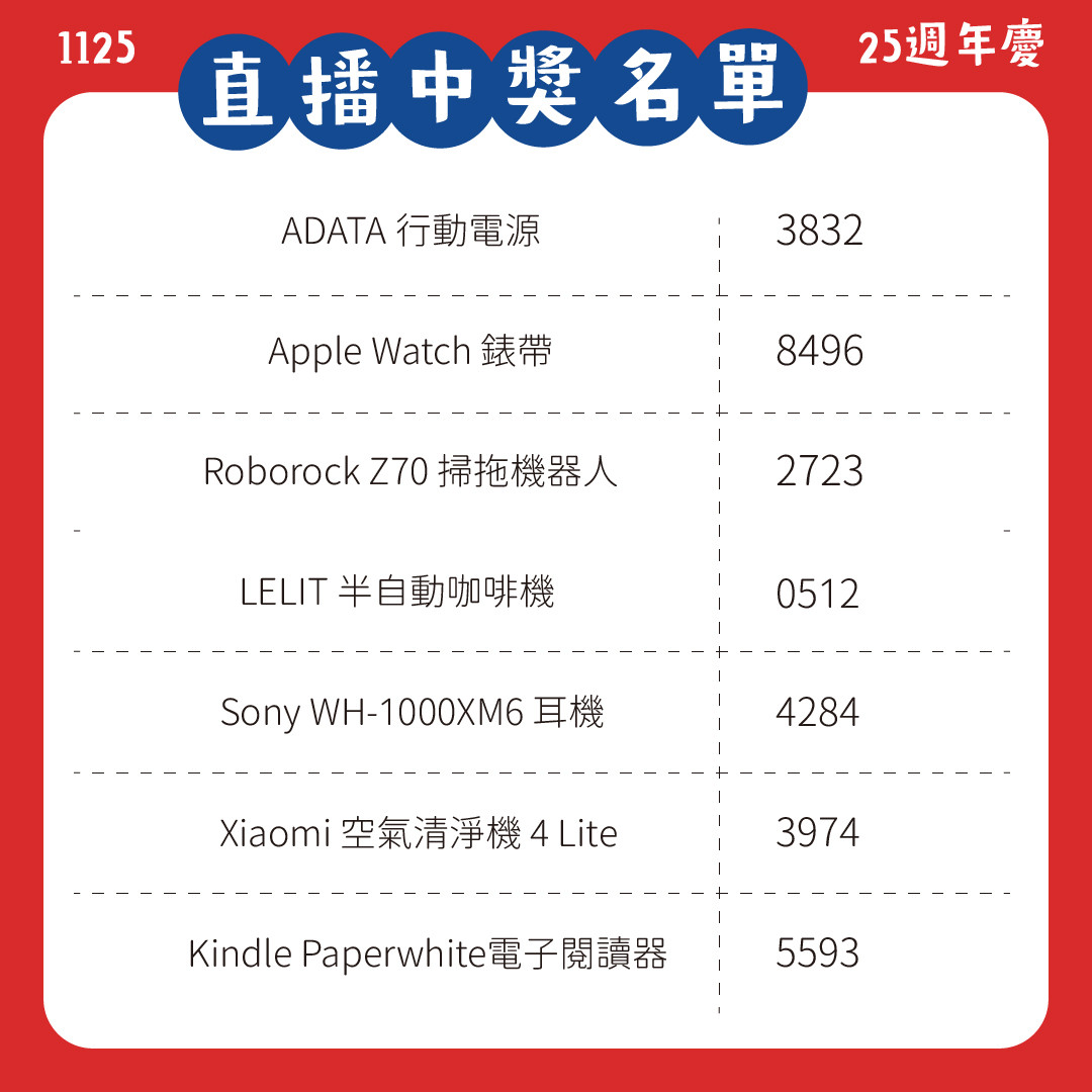【藝起幸運抽】Otto2 25週年慶 月月直播抽好禮ღ _ 中獎公告